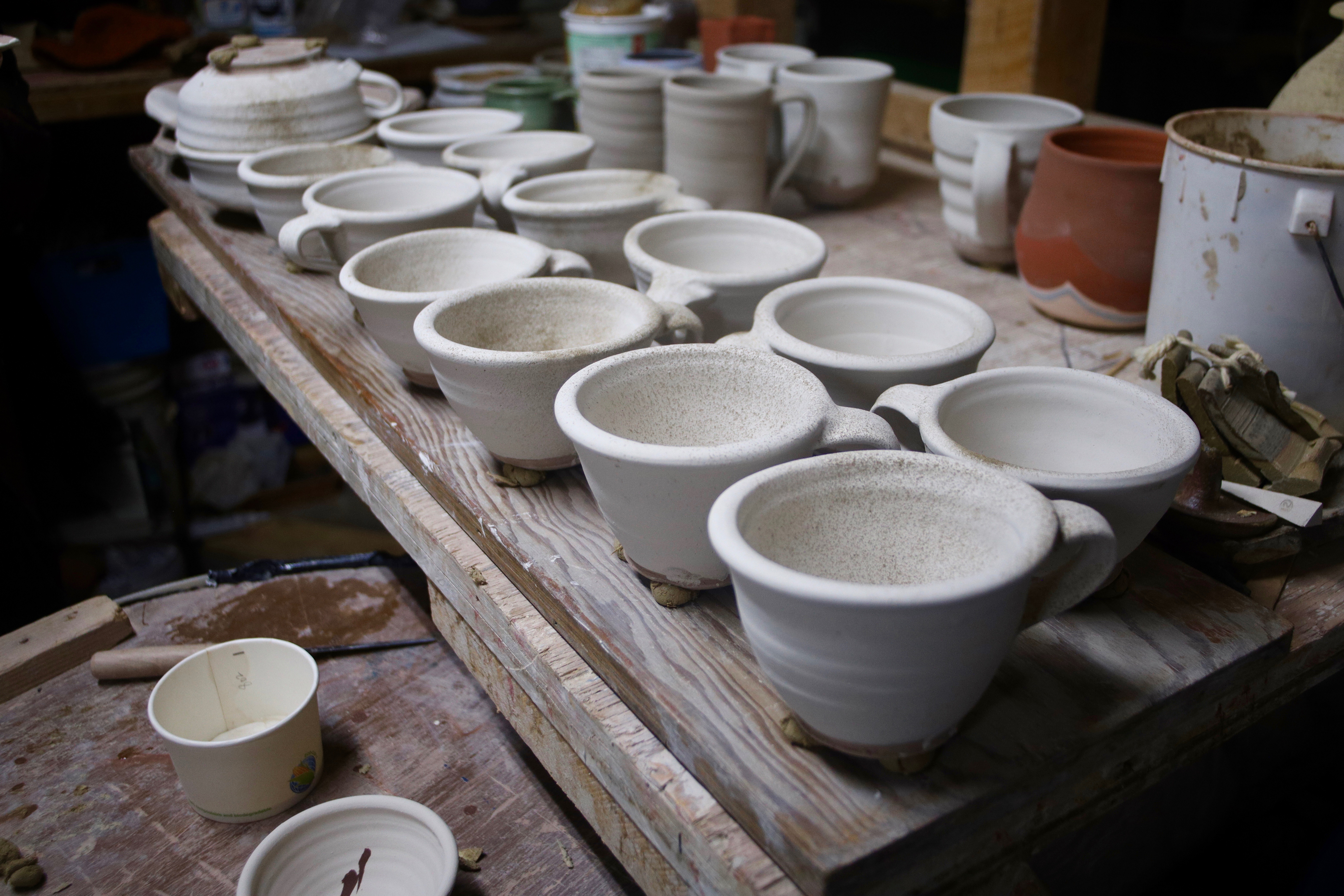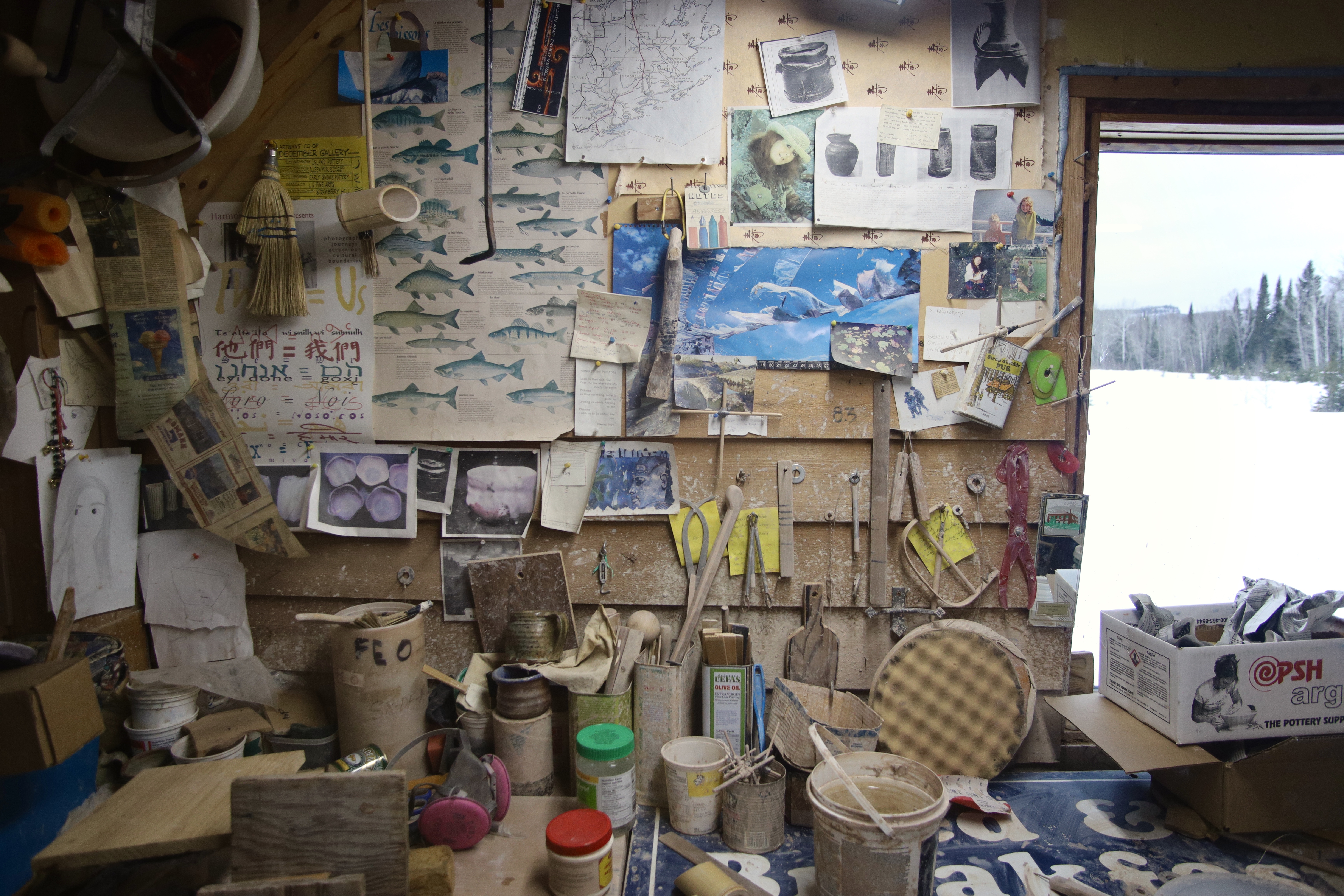 I always like seeing how other makers set up their workspaces.Katy prepping wadding before pots go in the kiln. Where the magic happensSplit wood – throw in kiln – repeat for 12+ hours