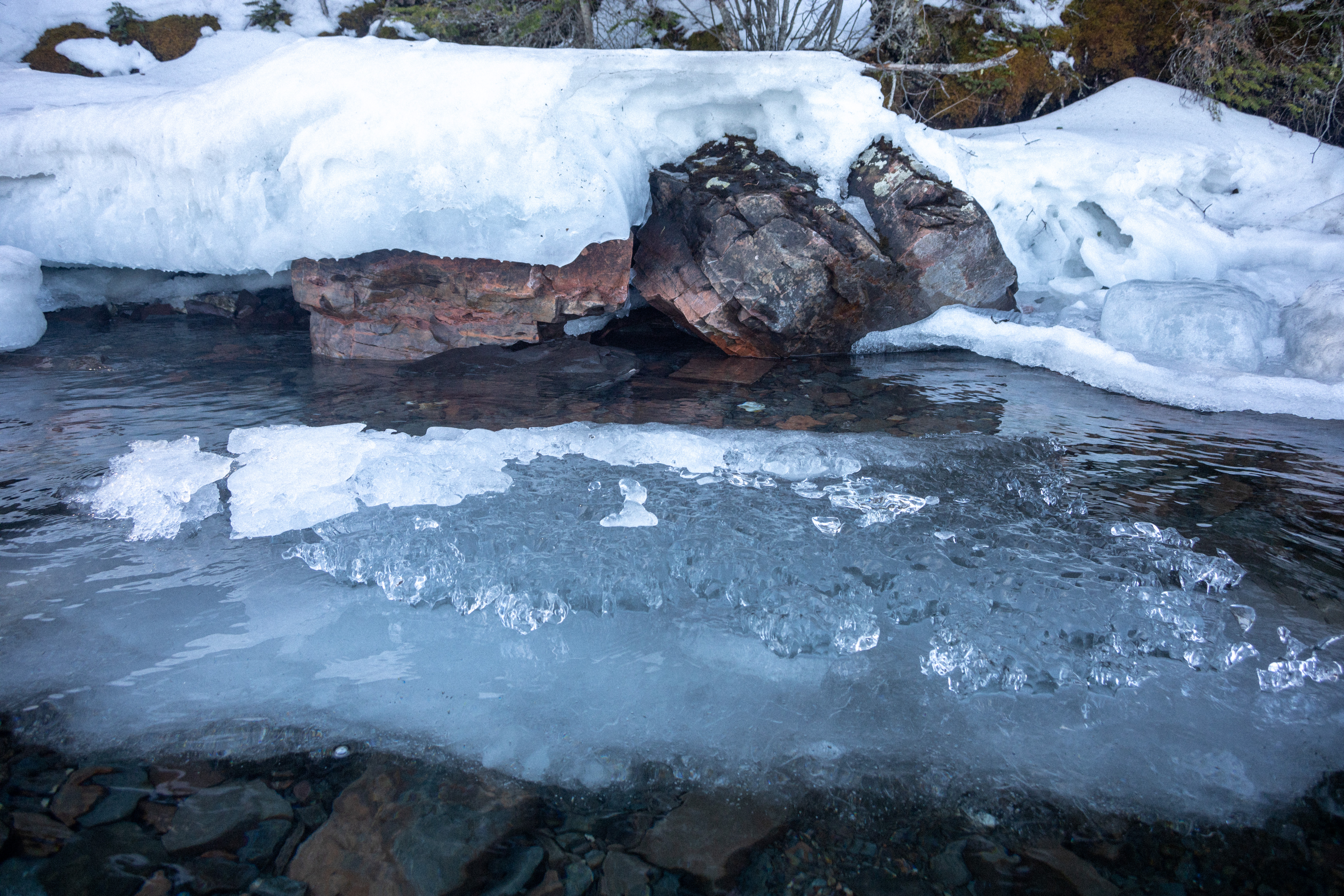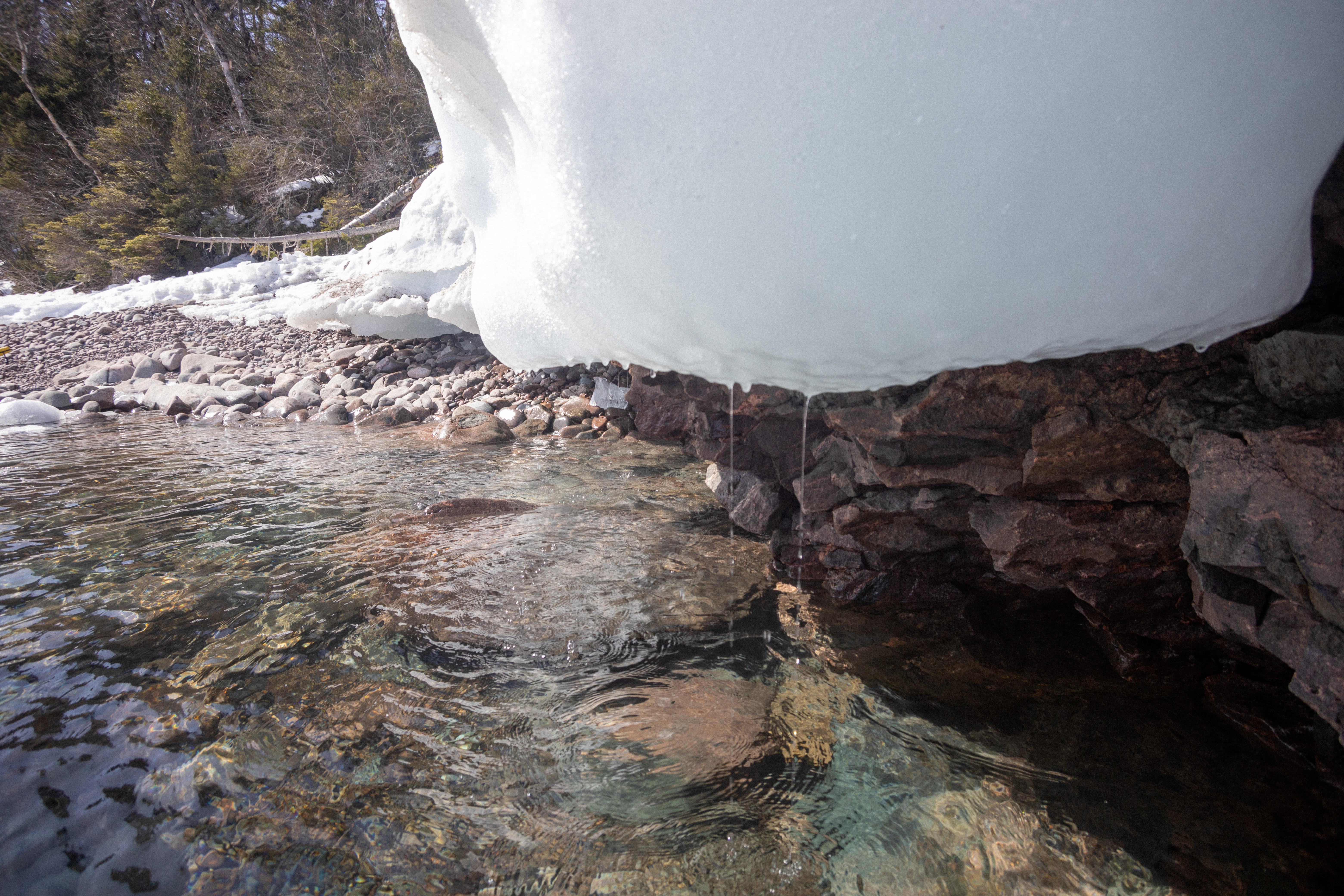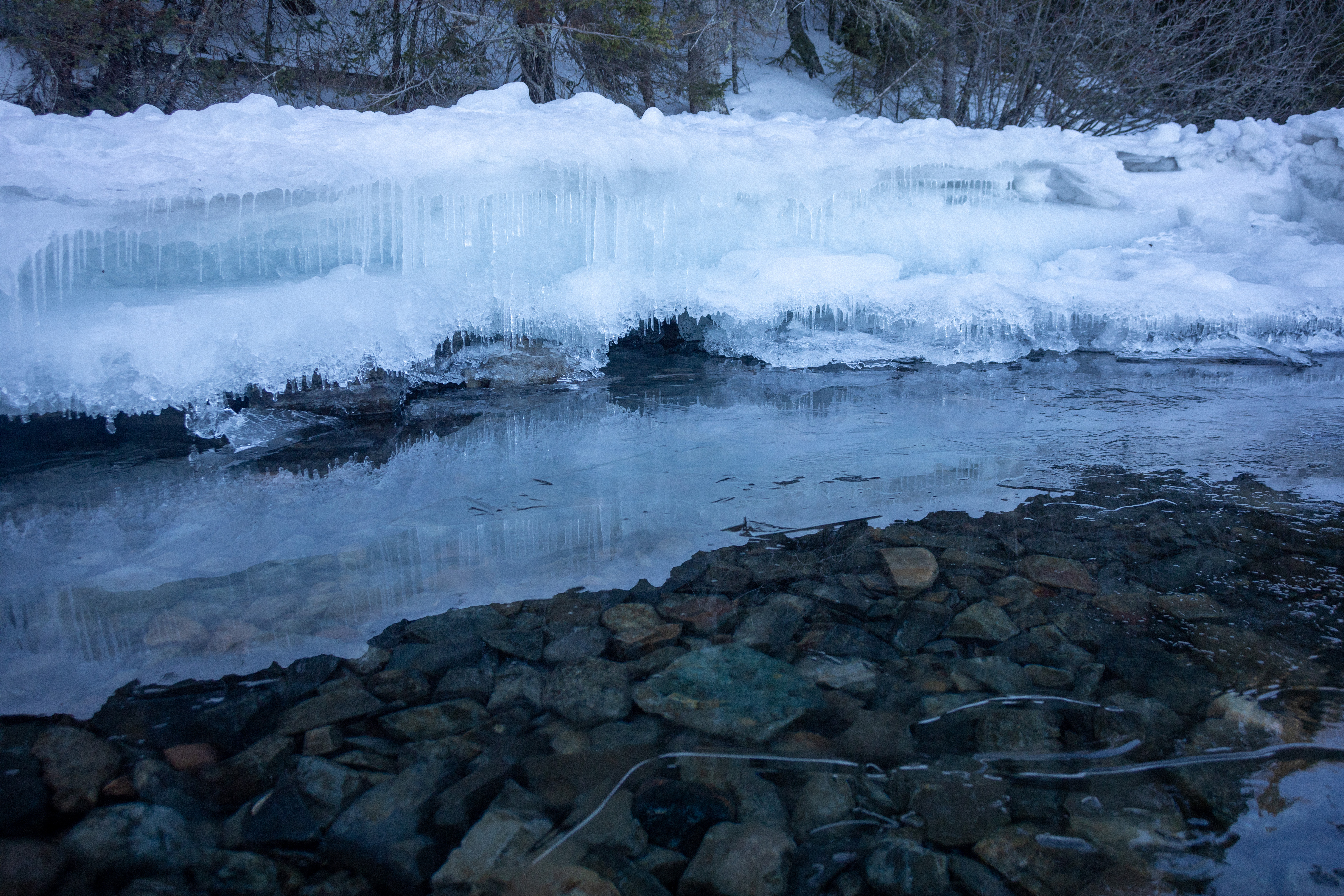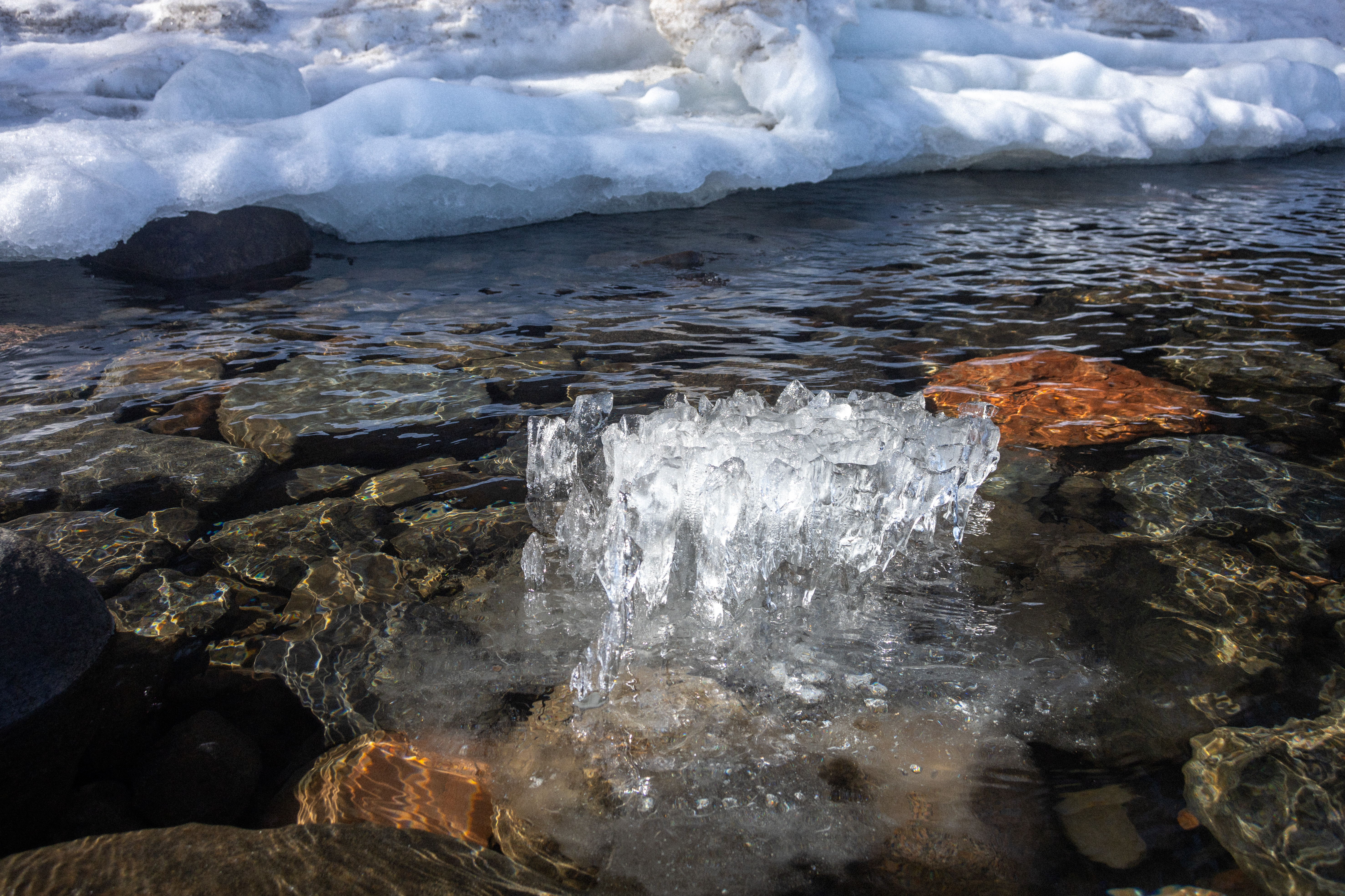 Smashing our way through some thin overnight ice to get across the bay.A recent winter storm drenched the shoreline in waves, creating some spectacular ice formations. Getting a little bumpy out there…
